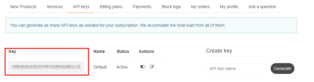 4. API Key가 하나 생성되신 것을 확인하실 수 있습니다.